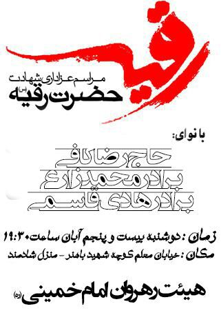 زمان : پنجشنبه ، 21 آبان بعد از نماز مغرب و عشاء